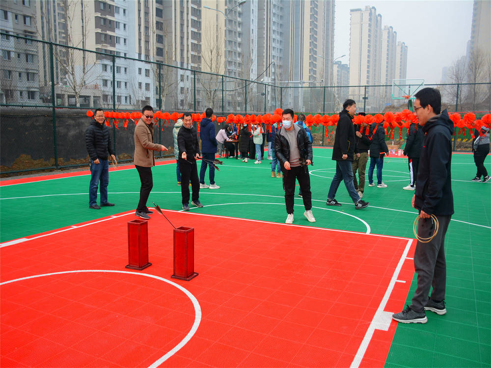 ? 項(xiàng)目部籃球場(chǎng)三排燈籠高掛,200個(gè)燈謎卡與吊穗隨風(fēng)飄動(dòng),黑色箭羽在古紅色的投壺中“張望”,還有那“蠢蠢欲動(dòng)”竹圈,似乎也在等待被人拾起的那一刻。在工作人員介紹完規(guī)則之后,大家爭(zhēng)先恐后地涌入活動(dòng)場(chǎng)地,正式開始了今天的趣味之旅。