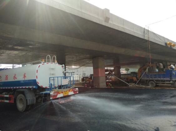 根據(jù)領(lǐng)導(dǎo)要求,第三分公司加大了人員及設(shè)備投入力度,現(xiàn)場(chǎng)現(xiàn)場(chǎng)管理人員達(dá)20余人,投入各類(lèi)機(jī)械11臺(tái),同時(shí)配備了灑水車(chē)、霧炮等設(shè)備,以確保施工中的揚(yáng)塵控制。為保證渣土及時(shí)運(yùn)出,項(xiàng)目部組織38輛小渣土車(chē)輪流作業(yè)進(jìn)行清運(yùn)。為縮短工期,項(xiàng)目部采取了碾壓混凝土施工工藝,做到了施工快,強(qiáng)度高,縮縫少,耐久性好,水泥用量少,減少施工環(huán)境污染,有效保證了施工進(jìn)度和工程質(zhì)量,將施工對(duì)市民生活、出行造成的影響降到最小,以確保工程盡早通車(chē)。