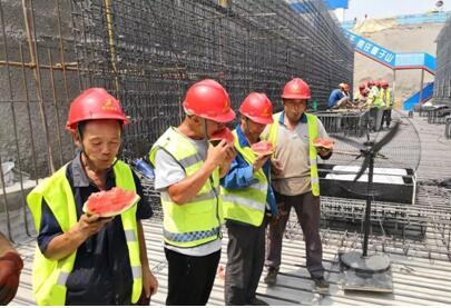 此時(shí),入秋后的濟(jì)南在幾場(chǎng)大雨的沖刷下,熱度漸退。彼時(shí),一線工人面對(duì)的卻是酷熱難耐。為確保一線員工與配屬隊(duì)伍炎熱高溫下安全施工,同晟路橋?yàn)橐痪€員工及配屬隊(duì)伍送去一提提礦泉水,一車車西瓜,一箱箱雪糕等防暑消暑品。