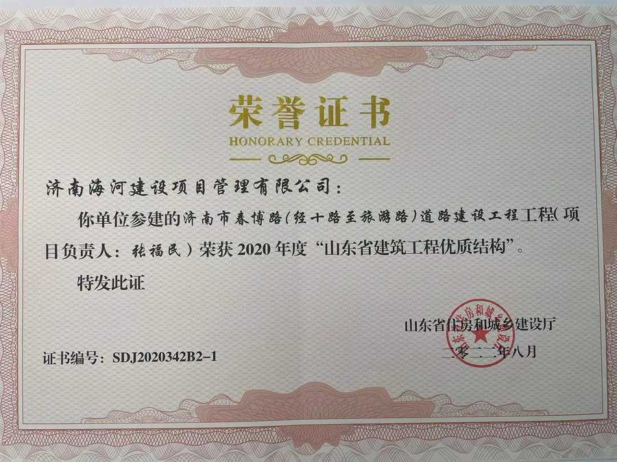 濰坊市濰縣中路工程榮獲2021